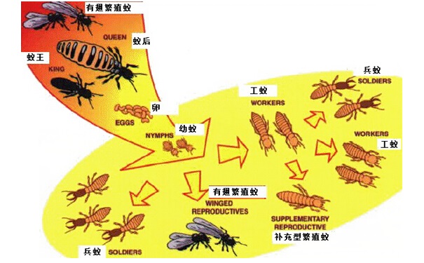 白蟻的種類有很多種,中國(guó)已知有白蟻4科、47屬、480多種,國(guó)內(nèi)28個(gè)省(市、自治區(qū))均有分布。其中危害較嚴(yán)重的有土木棲的鼻白蟻科乳白蟻屬的家白蟻(臺(tái)灣乳白蟻)、散白蟻、土棲的黑翅大白蟻、堆砂白蟻、黃胸散白蟻等,對(duì)房屋建筑危害最嚴(yán)重的是家白蟻。