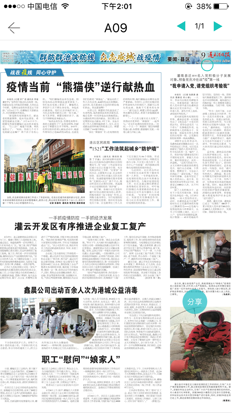 2020年2月20日,鑫晨公司出動百余人次為港城公益消毒。